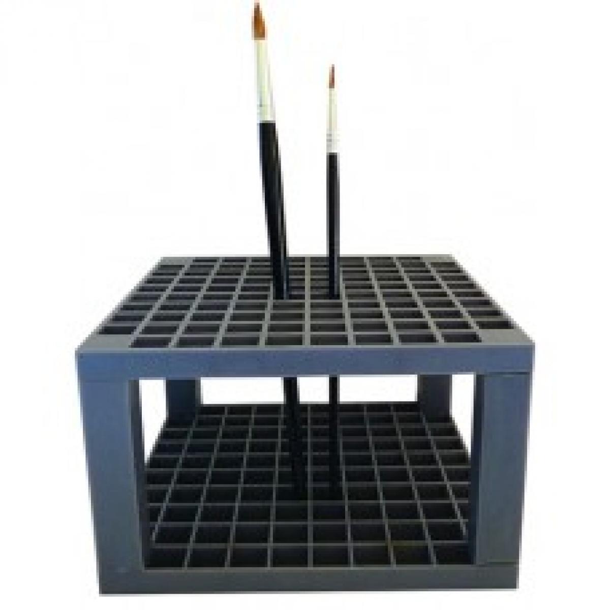 Sturdy, square plastic brush stand for the studio or classroom. With 96 compartments. Easy to store and organize brushes, markers and pencils