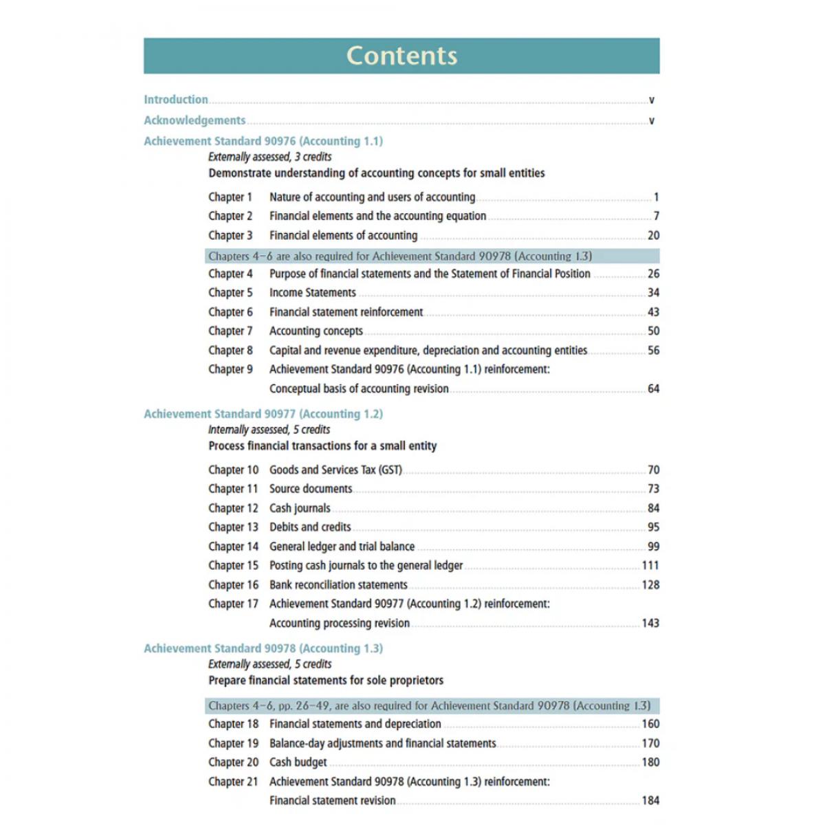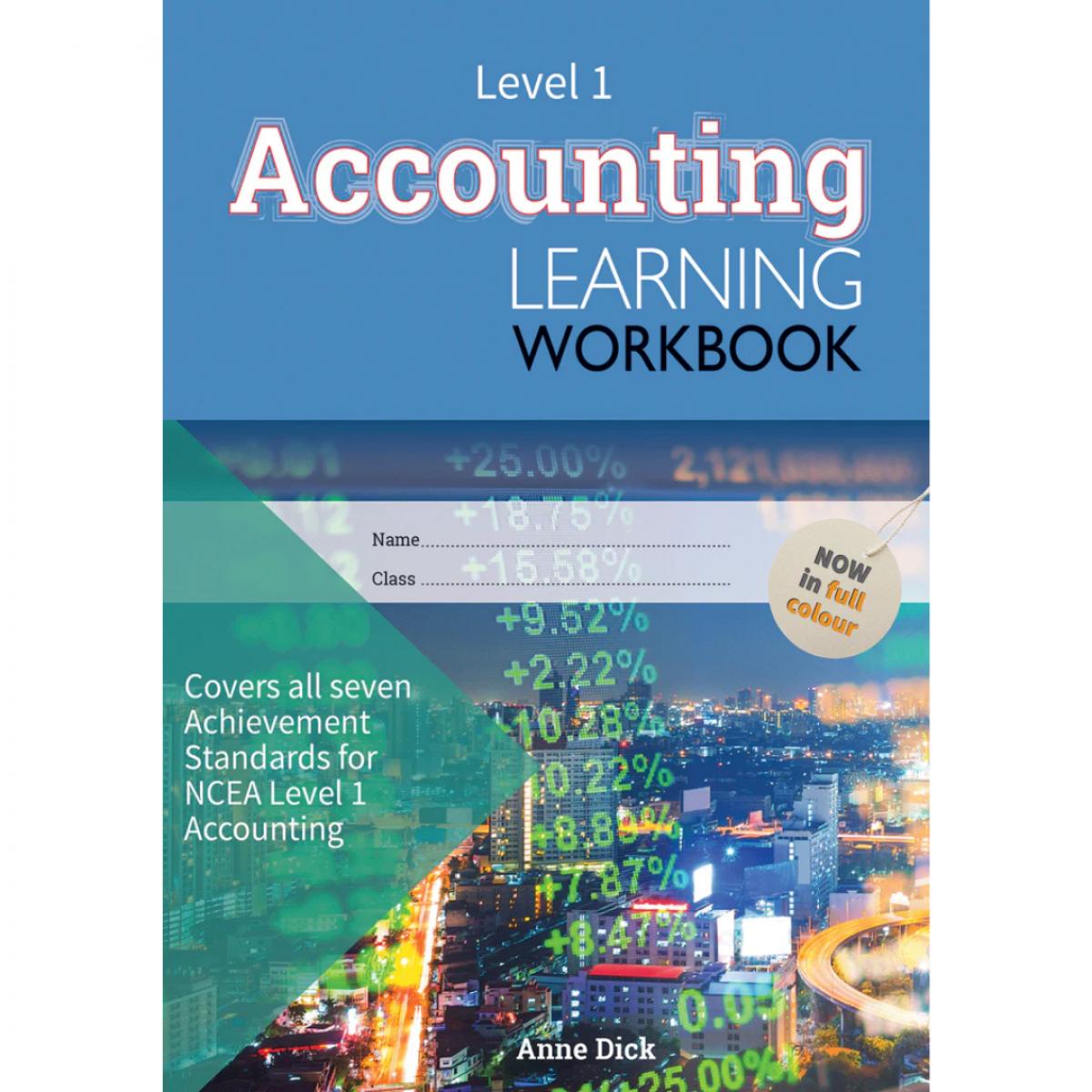 Level 1 Accounting Learning Workbook covers the seven key NCEA Level 1 Accounting Achievement Standards:
