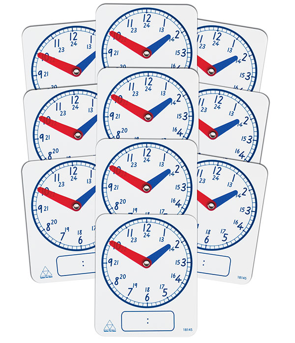 Featuring 24 hour time, minute increments and digital time display. This write on/wipe off clock is a great aide for teaching this extension of time.